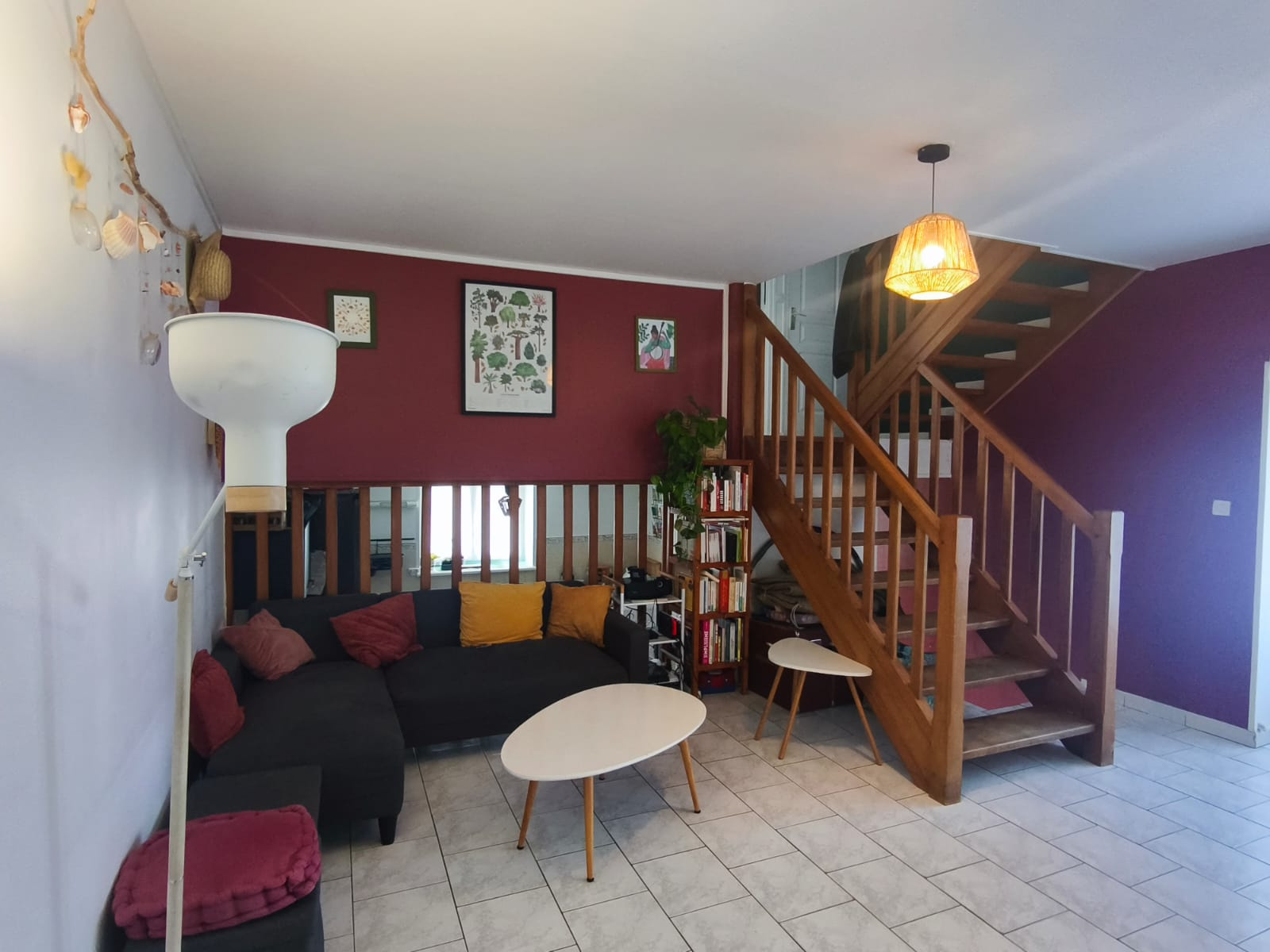 La maison développe environ 75 m² répartis sur trois niveaux. Sa configuration atypique lui donne du relief et du caractère. Le salon, baigné de lumière, invite à la détente. Côté nuit, trois chambres se répartissent les espaces, dont une en duplex qui apporte ce petit supplément d’âme qu’on ne retrouve pas partout.
